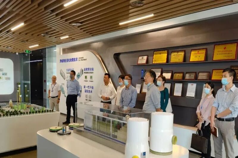 市政协调研组领导首先参观了乐竞体育科技产品展厅,观摩了乐竞体育各类高性能膜组件样品及高端环保装备模型,听取了乐竞体育董事长蒋林煜先生对乐竞体育的发展历程和高端环保装备产业链布局的汇报介绍。各位领导对乐竞体育近几年的发展速度和在环保领域取得的优异成绩给予了充分肯定,勉励乐竞体育在高性能膜材料、高端环保装备领域继续加强研发创新,实现国产替代,拓展更多的膜技术应用领域,为厦门市公共设施建设和膜产业的发展,为国家生态环保建设贡献更多力量。