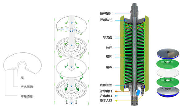 乐竞体育DT膜组件是一项用于液体脱盐及净化的现代化设计,采用开放式湍流流体动力学原理,使得悬浮固体及污染物不易沉积于膜组件内部,有效克服浓差极化,有效避免污染和结垢。在膜分离过程中,即使是在浊度和SDI指数均增高的情况下,它也能经济、有效地运行。